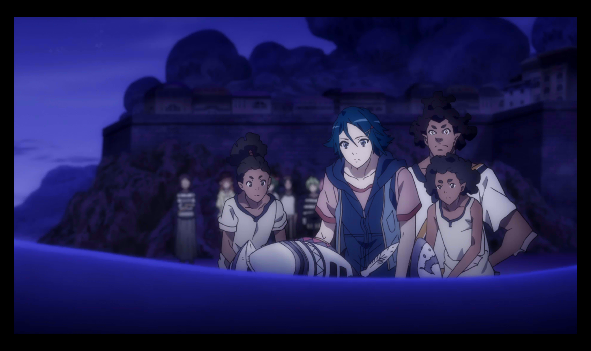 Description master sn_dsc_1342 VF-31を模した舟を海に浮かべるハヤテたち。 メッサーの魂が光クラゲとなり、再び空へ還ることを信じて…