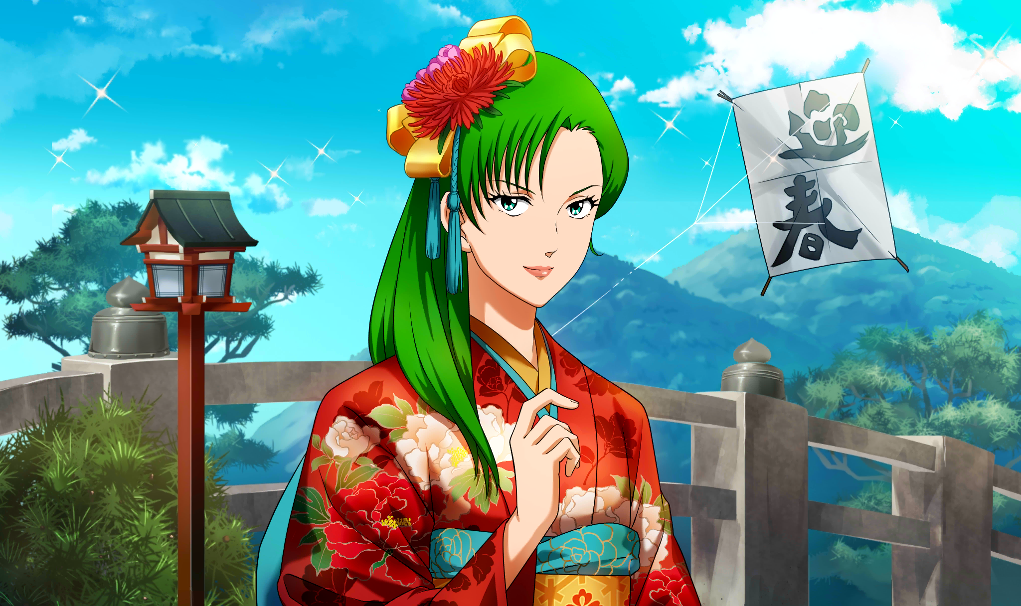 | Description | master sn_dsc_1443 | 初春の陽気の中、真紅の振り袖を華麗に着こなすミリア。 新年を祝うという文化に見事順応しているが、着付けは一体誰に教わったのだろう? |