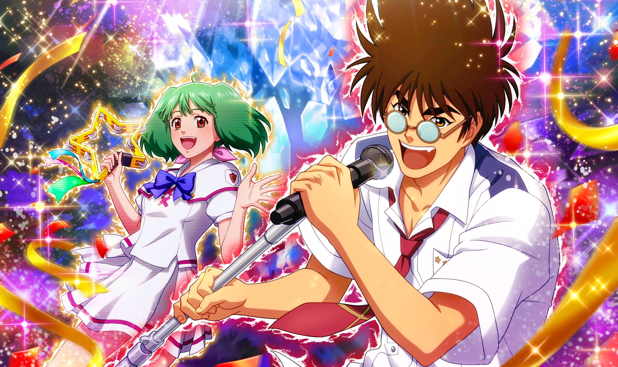 Description master sn_dsc_2233 迫りくる強大な敵に対して、超銀河総力LIVEにて共に迎え撃つバサラとランカ。 学園を舞台にした熱き青春のビートは、若者たちのハートを美しく星のように輝かせる。