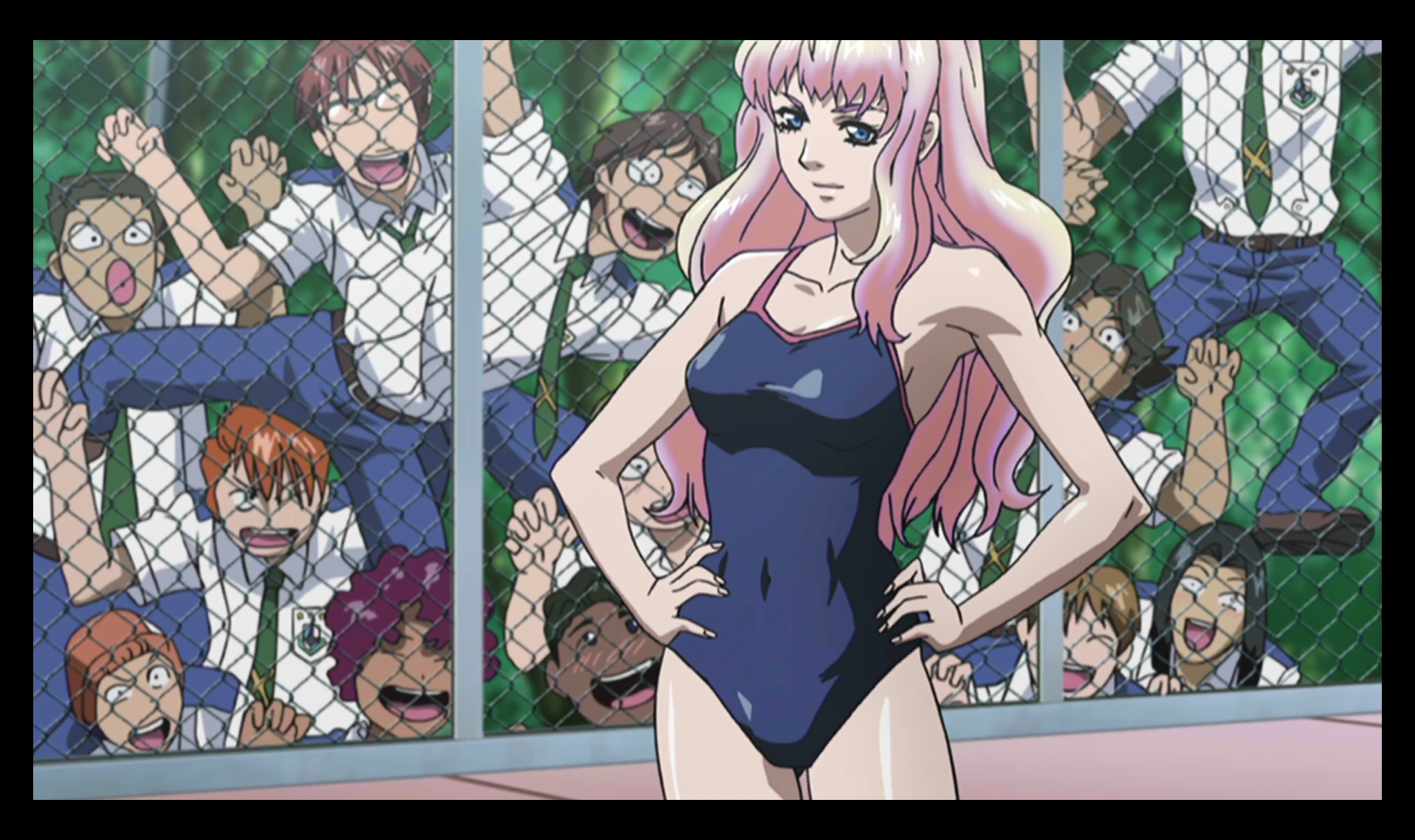 Description master sn_dsc_2441 シェリルの水着姿を一目見ようと、フェンスに殺到する美星学園の男子生徒たち。 一方シェリルは我関せずといった様子で、堂々とその見事なスタイルを披露していた。
