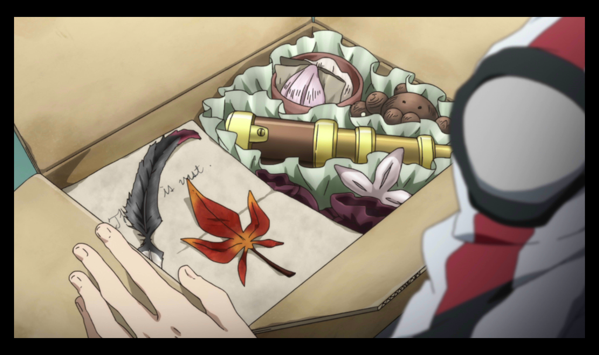 Description master sn_dsc_2472 母親から送られた、これまでの父親からの手紙と贈り物がまとめられた小包。 ハヤテが父親と同じパイロットになったことに、何か思うところがあったのだろう。