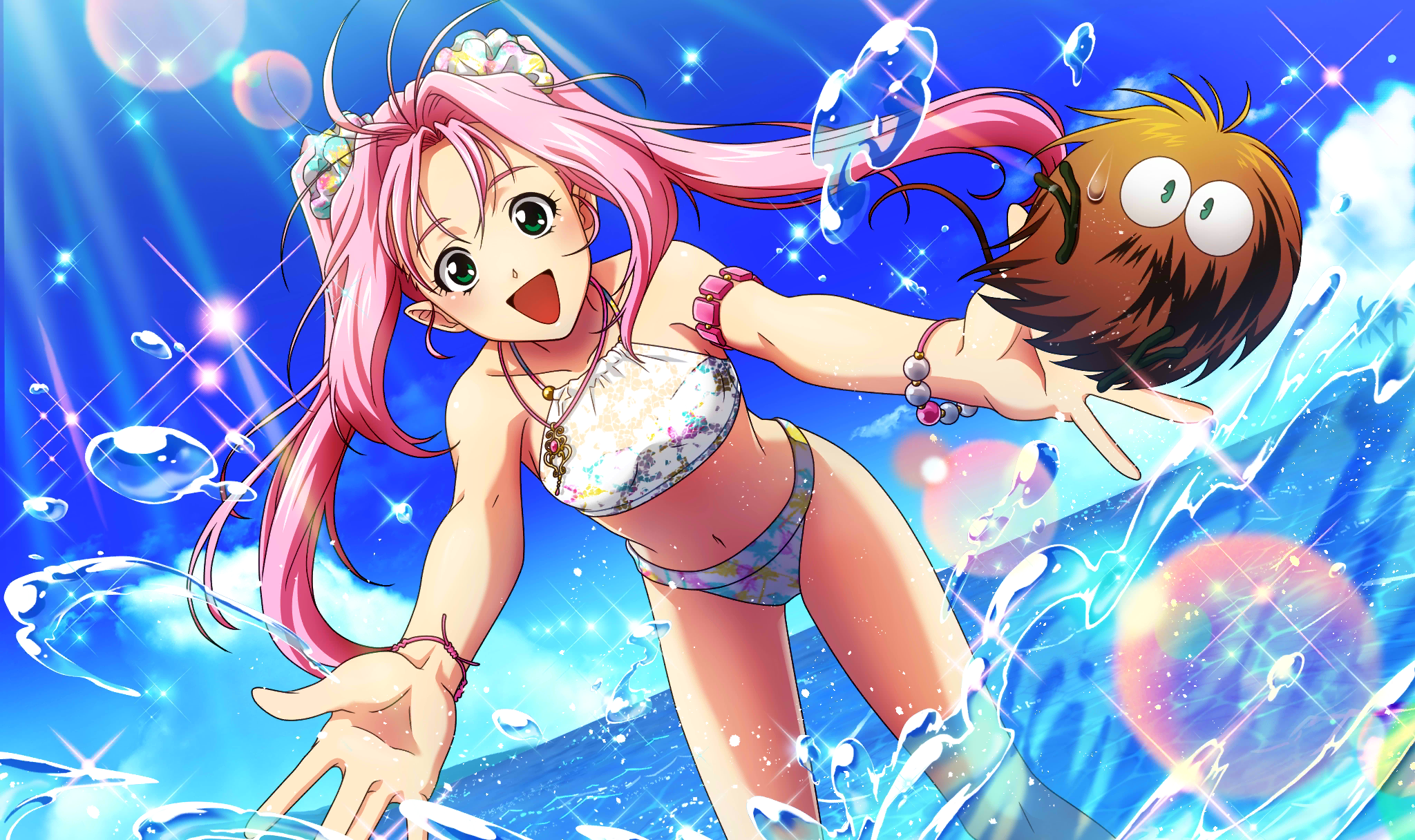 | Description | master sn_dsc_2521 | 白のレースにプリントがあしらわれたキュートな水着で夏の海を満喫するミレーヌ。 自由気ままに夏を楽しむミレーヌに対し、グババはちょっぴりお疲れのようである。 |