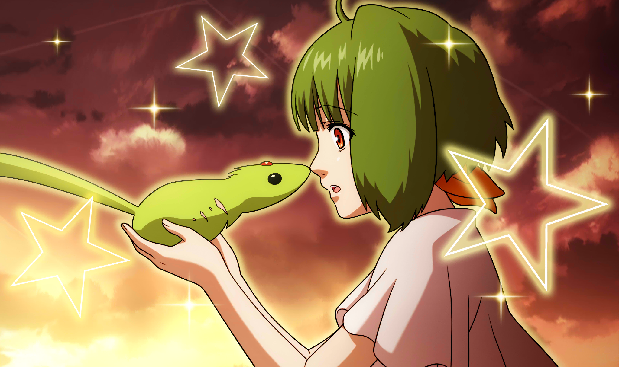 | Description | master sn_dsc_2548 | アルトに誕生日プレゼントを渡せなかったランカの元に再び現れた緑色の生き物。 気落ちしたランカを元気づけるかのように、体を伸ばして鼻先にキスをしたのだった。 |