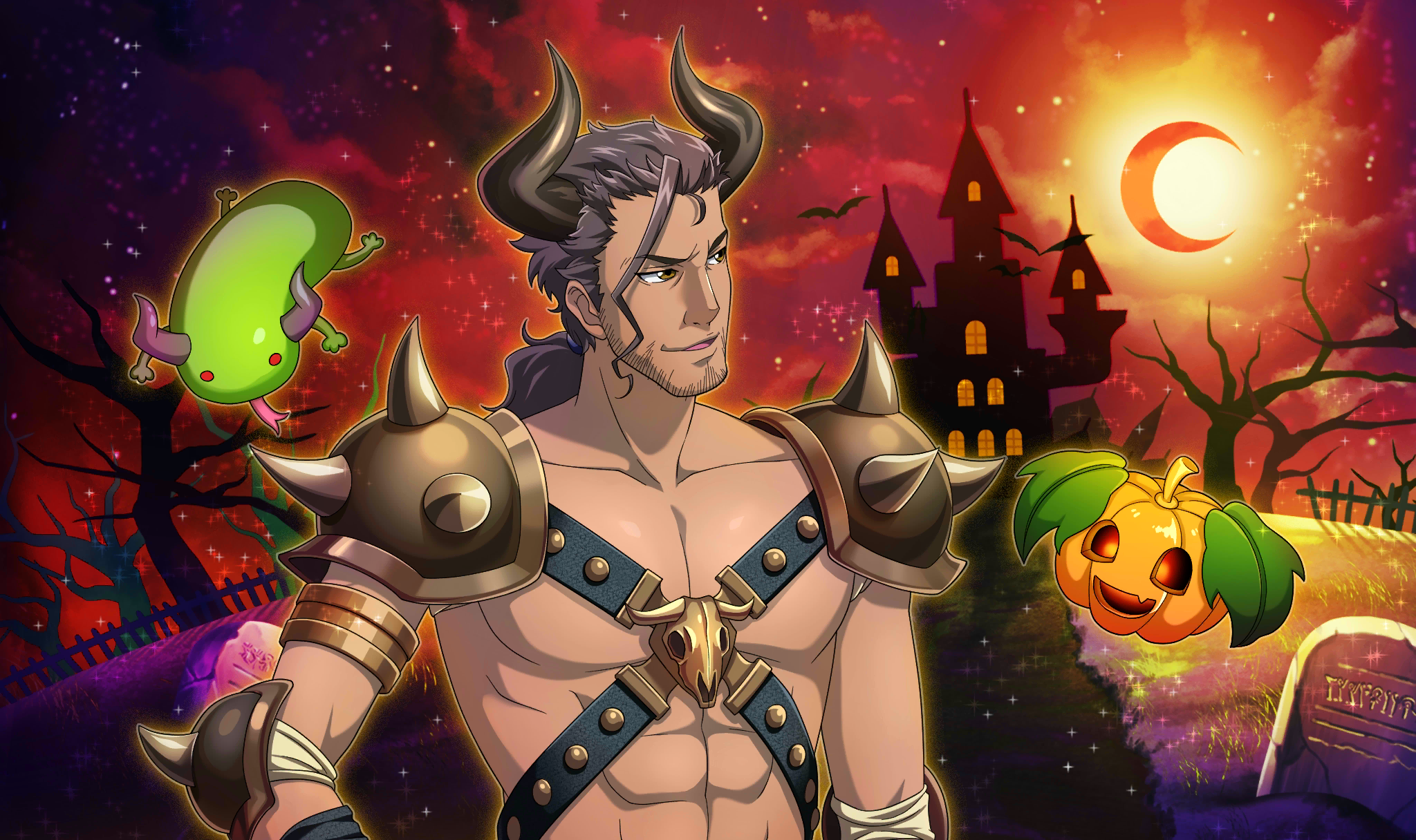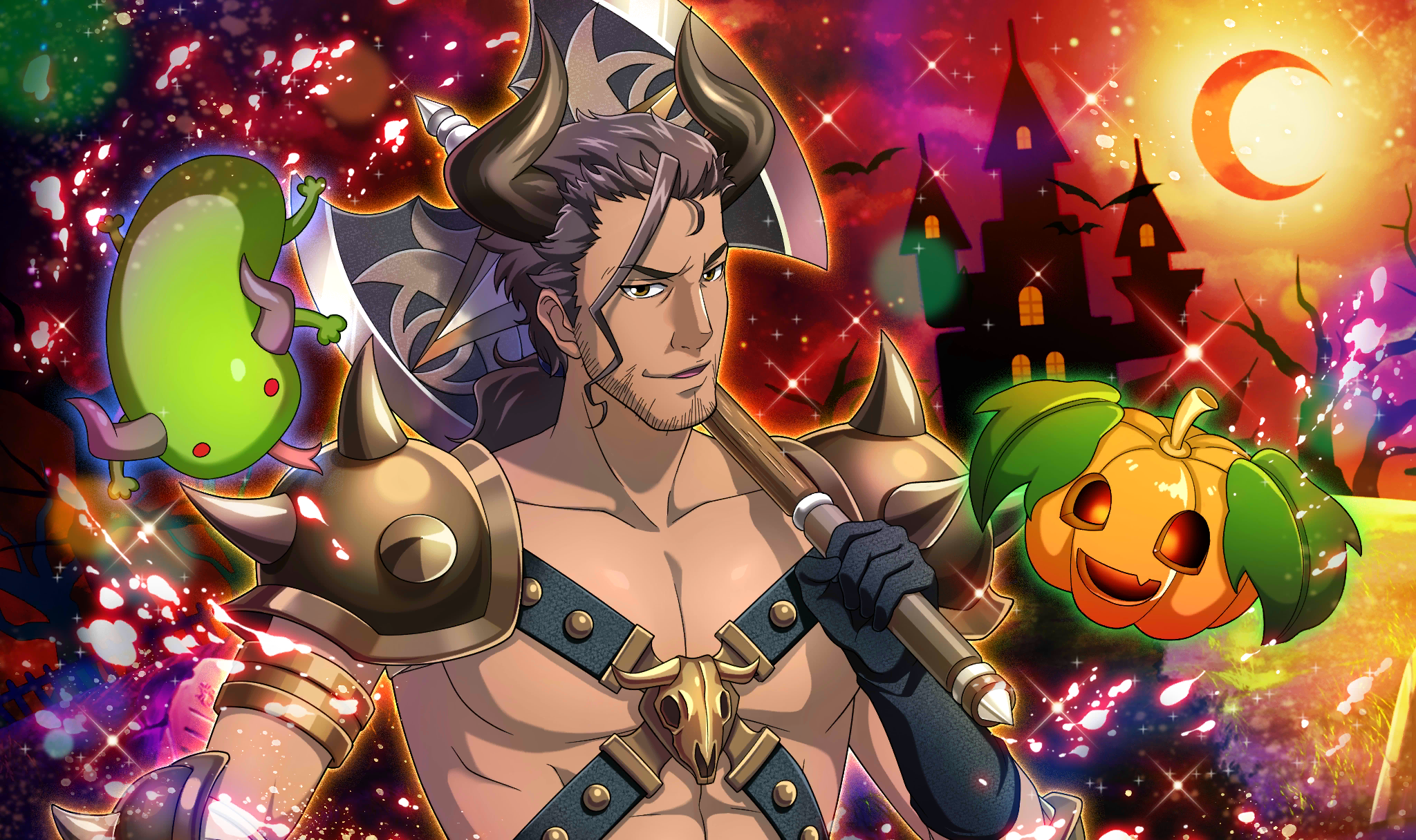 | Description | master sn_dsc_2571 | 自身のパーソナルマークにちなみ、牛頭の怪物をイメージした仮装に身を包むオズマ。 戦場で猛る姿を表すように、鍛え上げた肉体でハロウィンの夜を練り歩いていく。 |