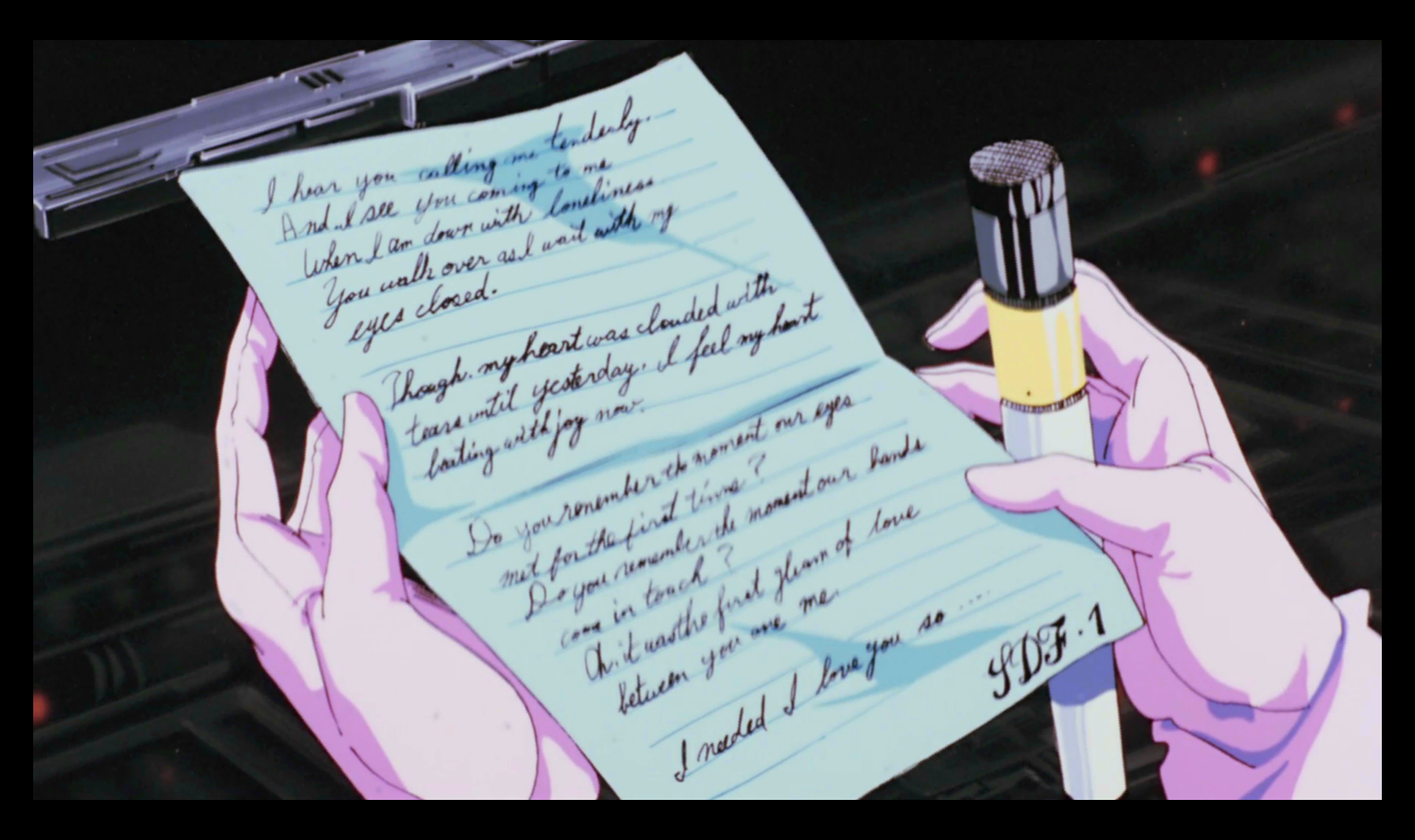 | Description | master sn_dsc_2892 | 未沙が解読し、輝からミンメイに手渡された歌の歌詞。 紙1枚に記された歌詞が、銀河の運命を変えたのである。 |