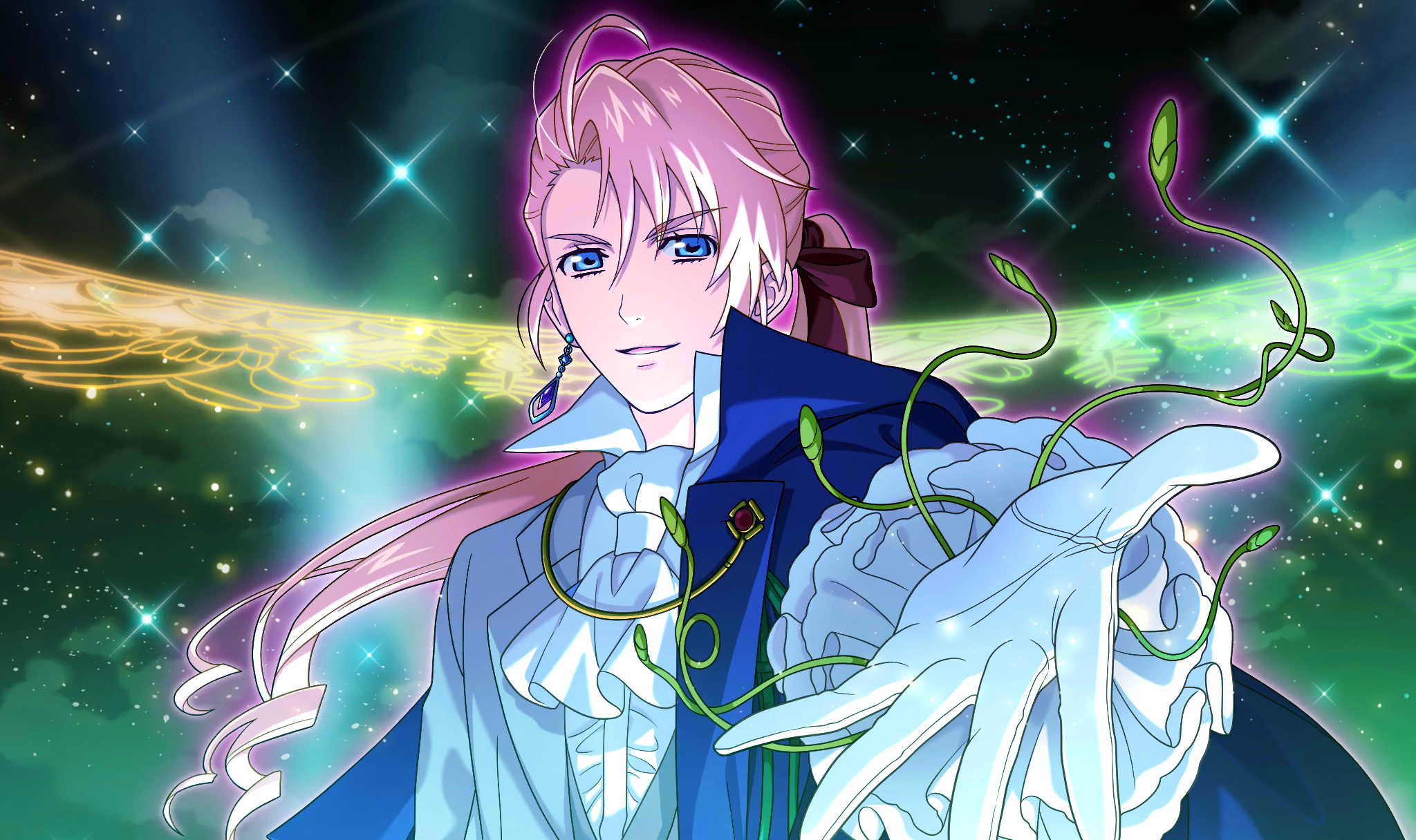| Description | master sn_dsc_3615 | 夜空に浮かぶ紋様の下、流麗なる眼差しで新郎姿のシェリルは手を差し伸べる。 その端正なる顔立ちと指先から延びる蔓は、心のすべてを絡めとっていくかのようだ。 |