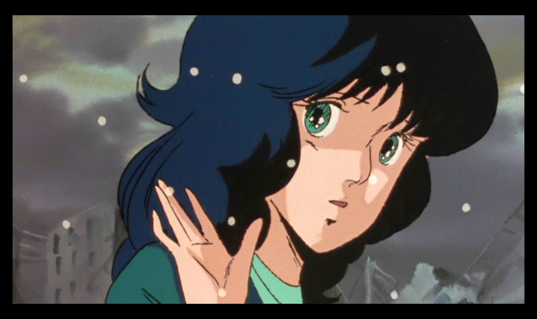 | Description | master sn_dsc_0669 | 輝と未沙に別れを告げ、その場を去ろうとするミンメイ。 荒れ果てた街と彼女の心を包み隠すように、空からは雪が降り始めるのだった。 |