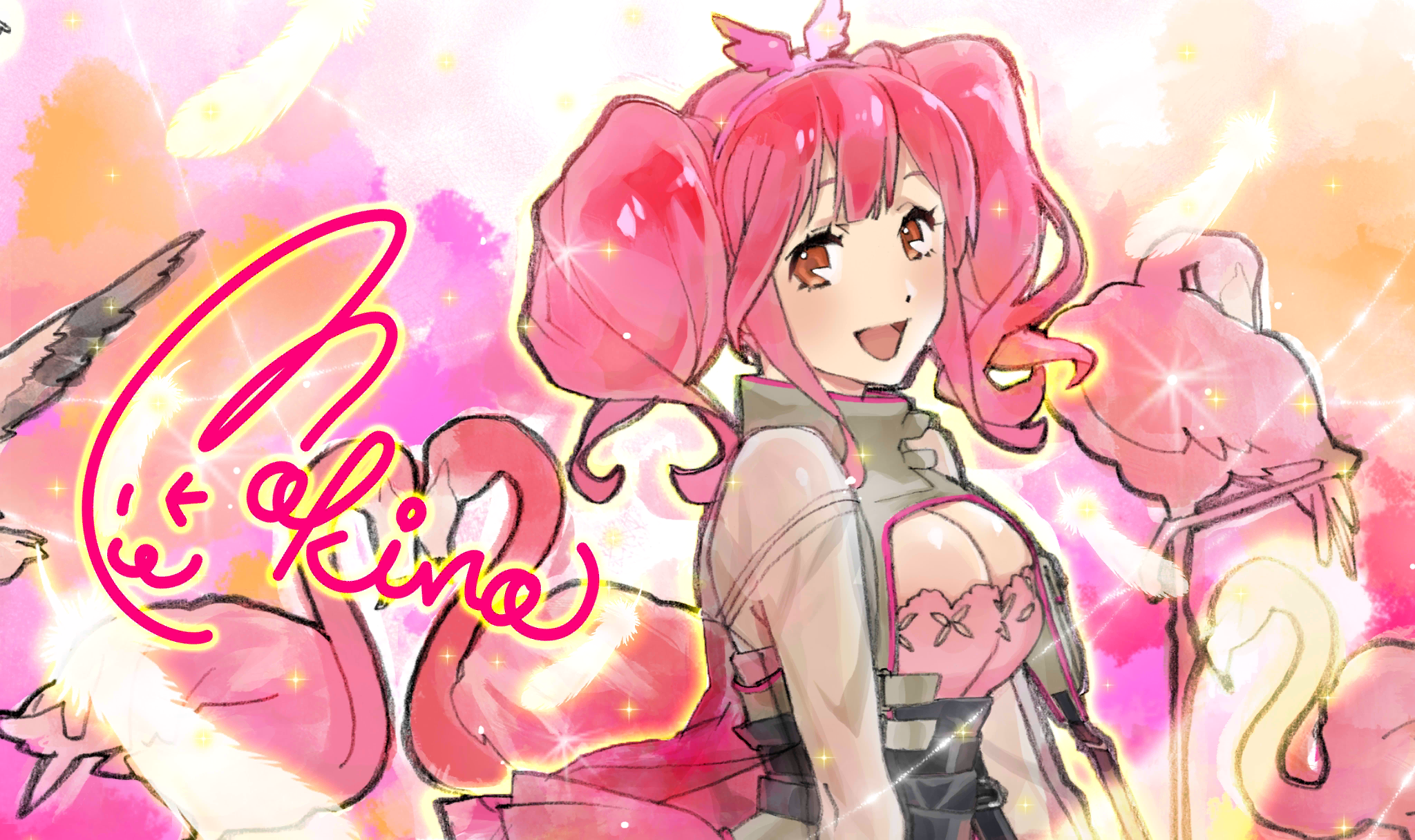 | Description | master sn_dsc_0754 | フラミンゴは平穏のために特殊な環境の水辺に生息する鮮やかなピンク色の鳥だ。 柔和な雰囲気と性格で周囲を包むマキナが望むのは、平穏な世界なのかもしれない。 |