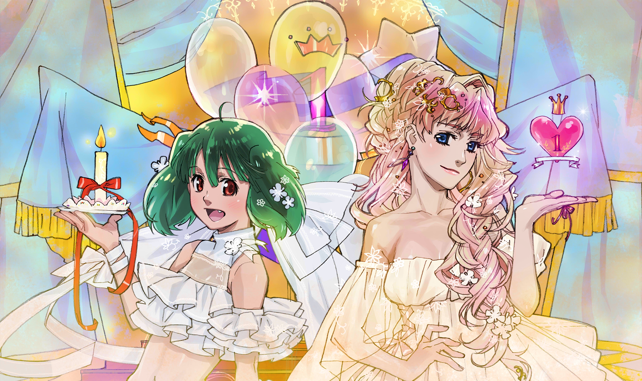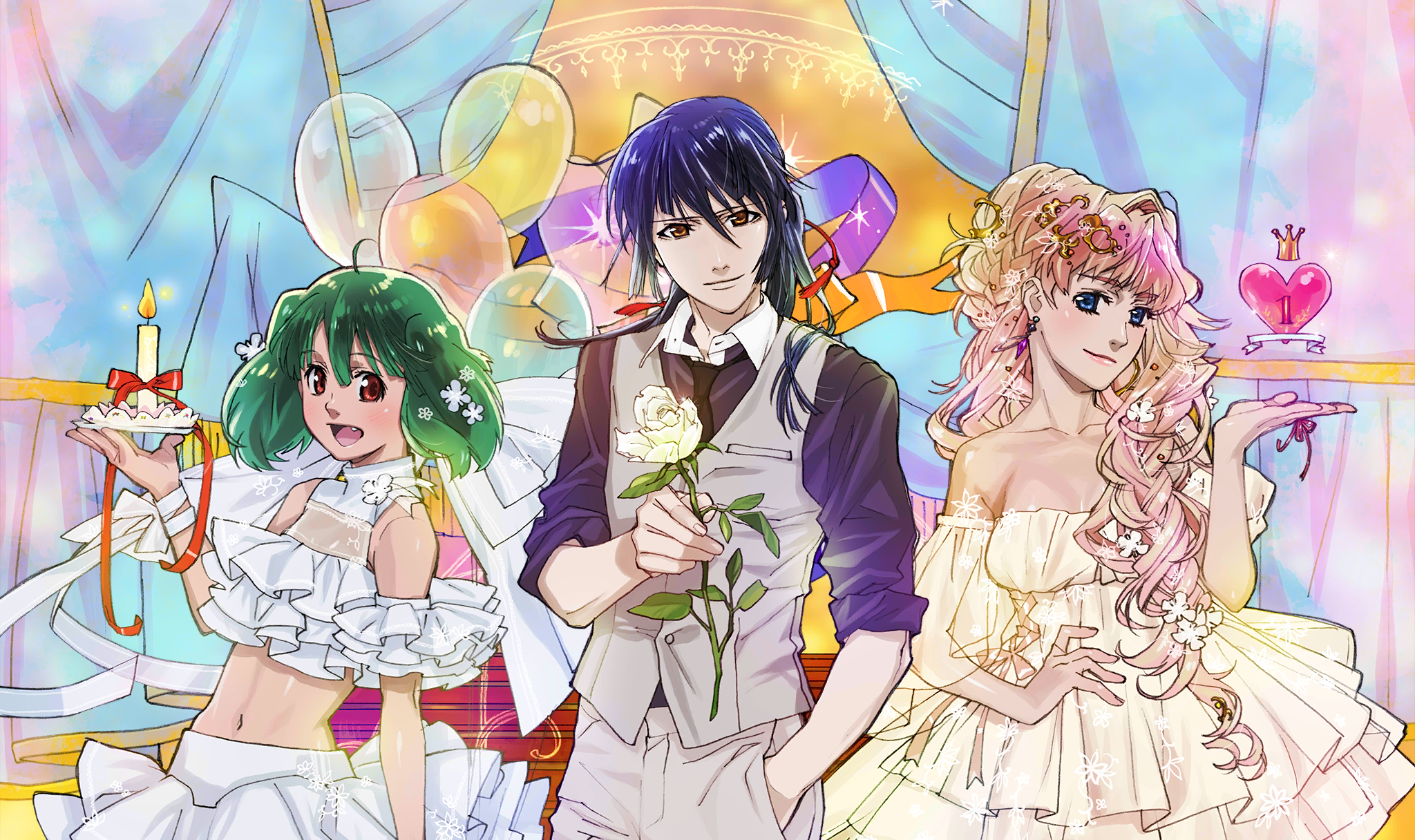 | Description | master sn_dsc_0794 | みなさまに支えられ、「歌マクロス」も1周年を迎えることができました。 シェリルとランカもドレスに身を包み、お祝いしてくれているようです! |