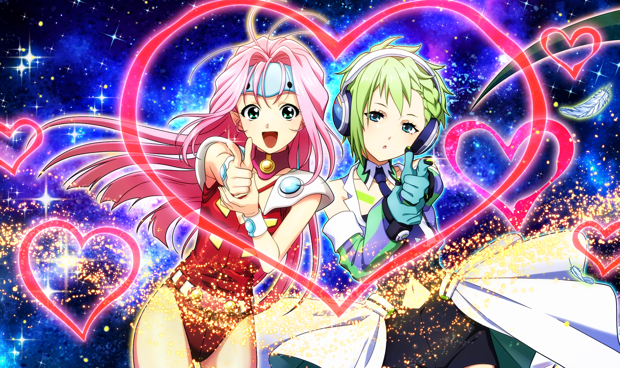 | Description | master sn_dsc_0797 | Fire Bomberのベーシストであるミレーヌと、ワルキューレの天才ハッカーレイナ。 2人のフレッシュな発想と技術で、銀河中に遊び心とサプライズを広げてくれそうだ。 |